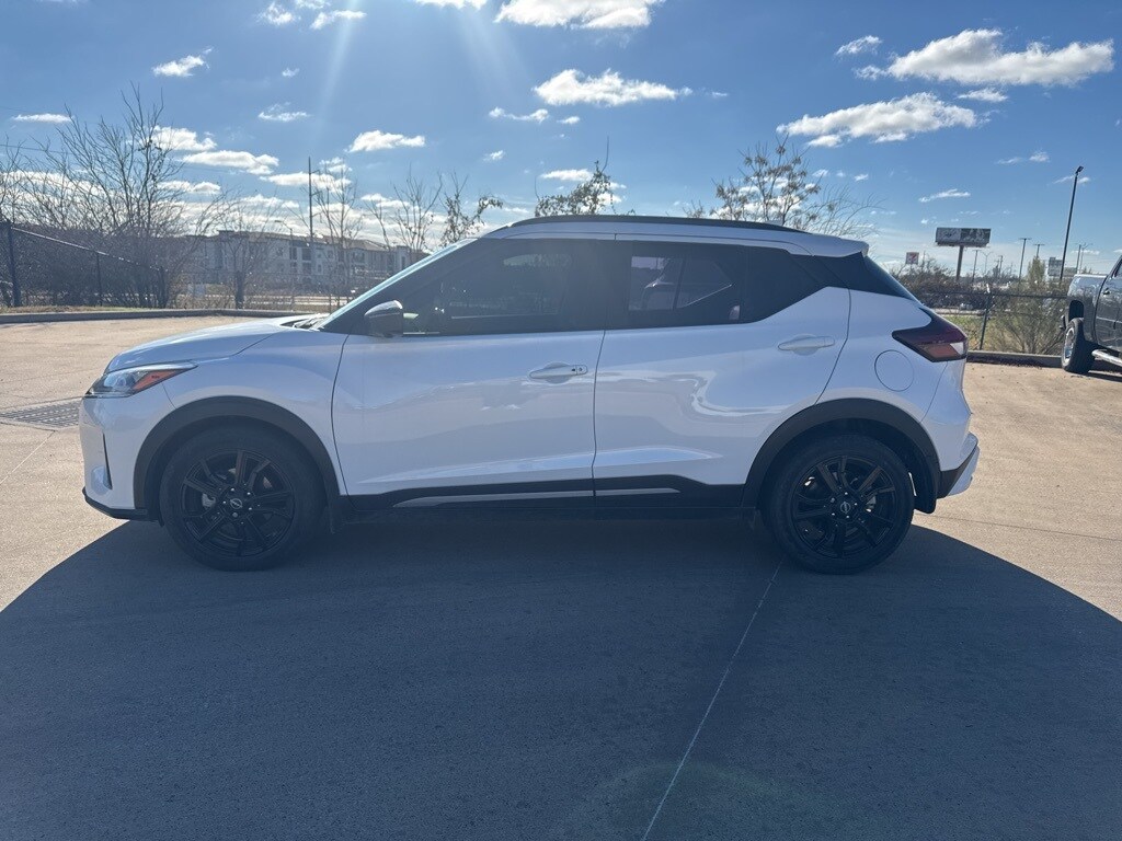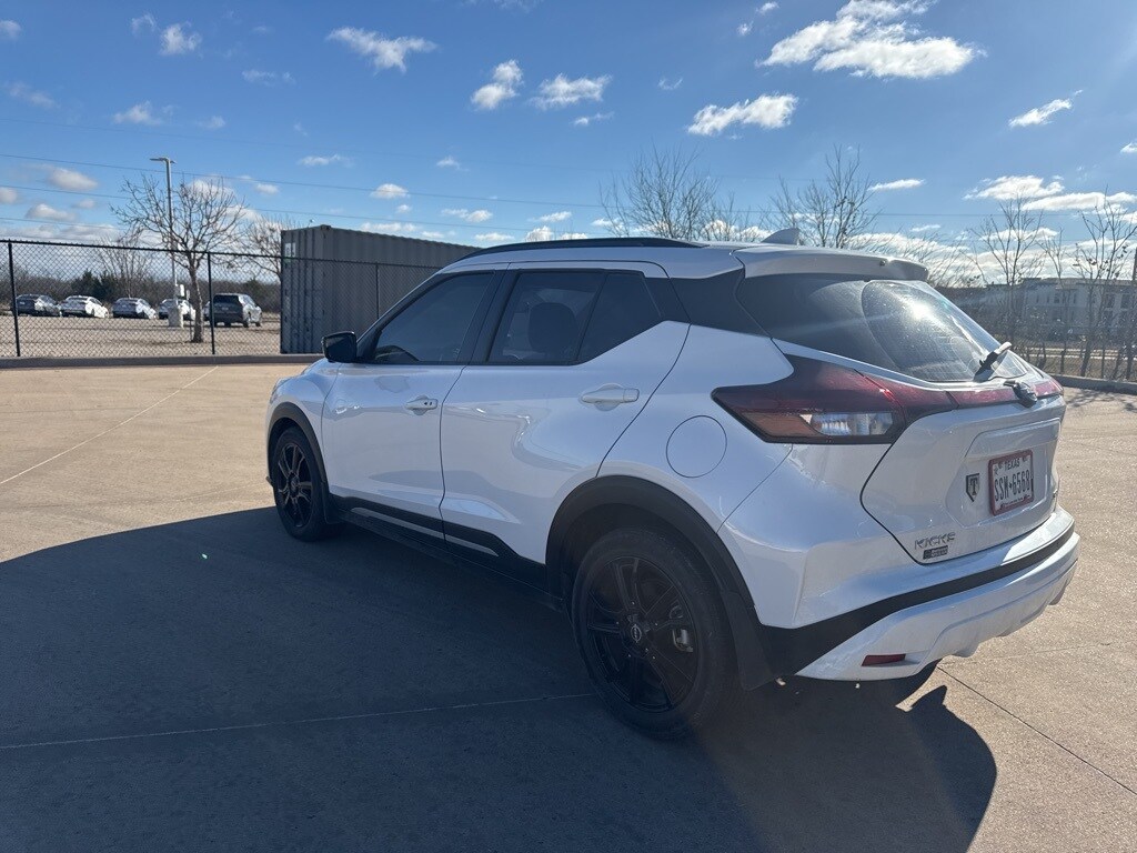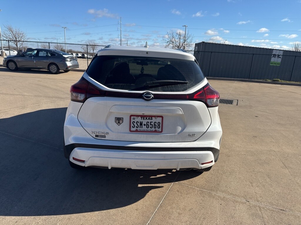 CARFAX One-Owner. Certified. Aspen White Tricoat 2023 Nissan Kicks SR FWD CVT with Xtronic 1.6L 4-Cylinder DOHC 16V Odometer is 9953 miles below market average! 31/36 City/Highway MPG Recent Arrival!