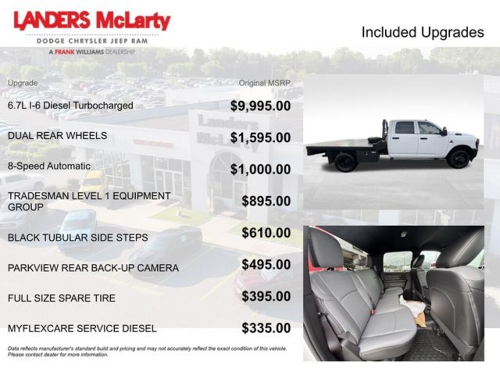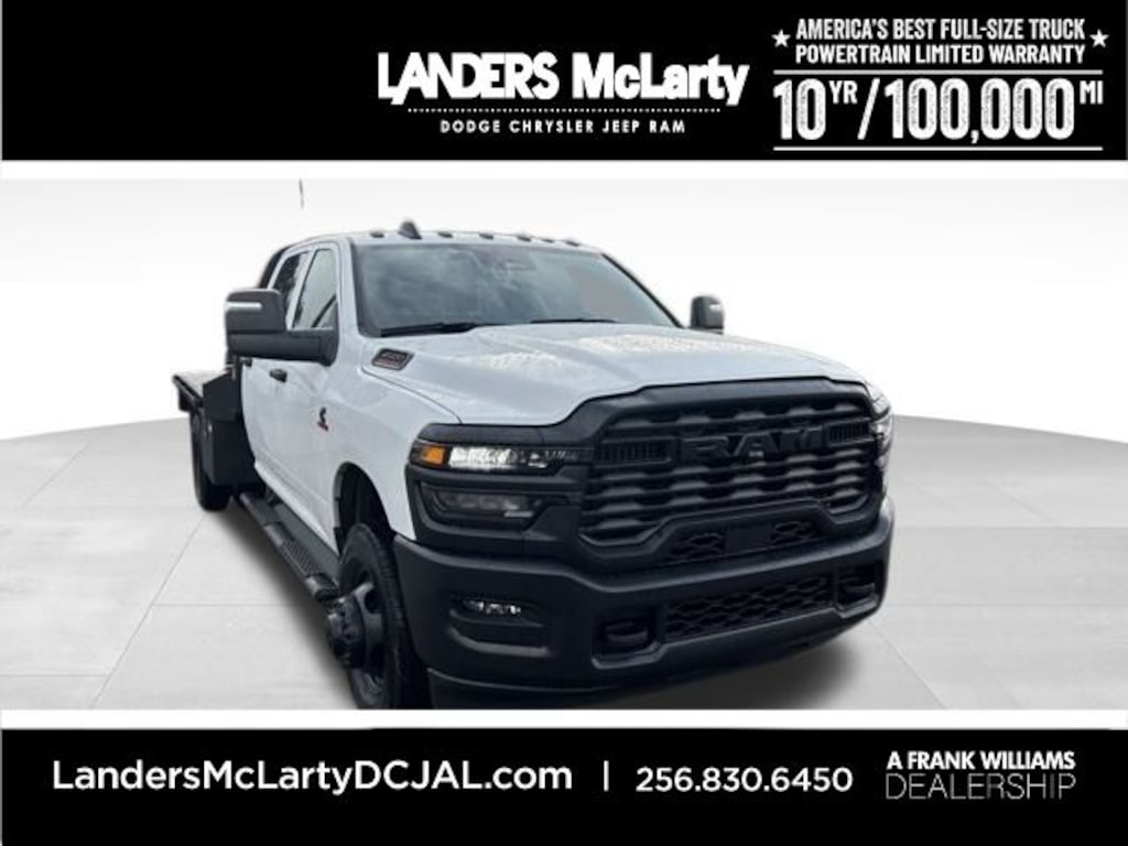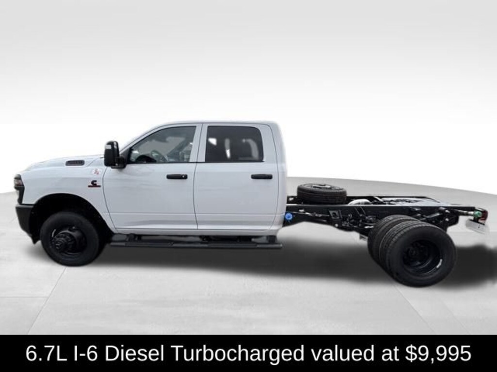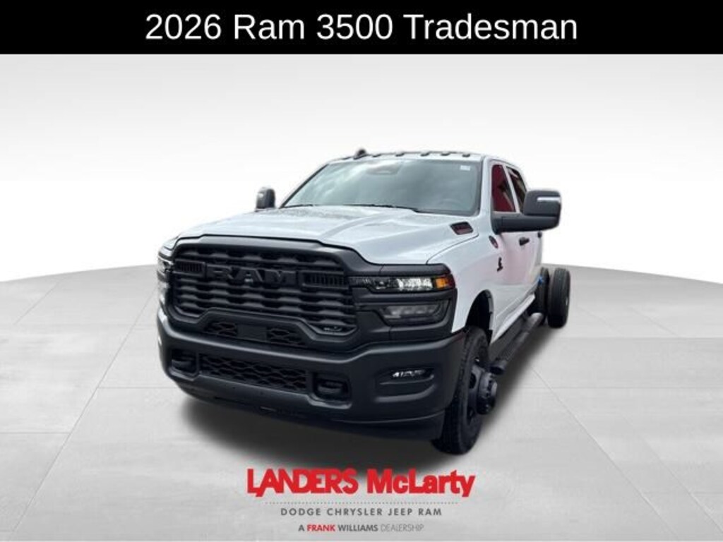 **10YR 100K WARRANTY**, 3500 Tradesman, 4D Crew Cab, Cummins 6.7L I6 Turbodiesel, 8-Speed Automatic, 4WD, Bright White Clearcoat, Diesel Gray/Black Vinyl, 11.50" Dual Wheels Rear Axle, 2 Way Rear Headrest Seat, 4-Wheel Disc Brakes, 40/20/40 Split Bench Seat, 4G LTE Wi-Fi Hot Spot, 6 Speakers, 6000# Front Axle w/Hub Ext, ABS brakes, Air Conditioning, AM/FM radio: SiriusXM, Apple CarPlay, Apple CarPlay/Android Auto, Black Exterior Mirrors, Black Power Heated Fold Telescope Mirrors, Black Tubular Side Steps, Black Wheel Center Hub, Center Hub, Compass, Connectivity - US/Canada, Delay-off headlights, Driver door bin, Dual front impact airbags, Dual Rear Wheels, Electronic Stability Control, Emergency communication system: RAM Connect, Exterior Mirrors Courtesy Lamps, Exterior Mirrors w/Heating Element, Exterior Mirrors w/Supplemental Signals, For Details, Visit DriveUconnect.com, Front anti-roll bar, Front Armrest w/Cupholders, Front Center Armrest w/Storage, Front fog lights, Front reading lights, Fully automatic headlights, Global Telematics Box Module (TBM), Google Android Auto, GPS Antenna Input, HD Vinyl 40/20/40 Split Bench Seat, Illuminated entry, Integrated Voice Command w/Bluetooth, Manual Adjust 4-Way Driver Seat, Manual Adjust 4-Way Front Passenger Seat, Manual Folding Exterior Mirrors, Manual Telescoping Mirrors, Mirror Running Lights, MyFlexCare Service Diesel, Nexen Brand Tires, Occupant sensing airbag, Outside temperature display, Overhead console, Panic alarm, ParkView Rear Back-Up Camera, Passenger door bin, Passenger vanity mirror, Power Adjust Mirrors, Power steering, Power windows, Power-Adjustable Convex Aux Mirrors, Quick Order Package 25A Tradesman, Radio data system, Radio: Uconnect 5 w/8.4" Display, Rear anti-roll bar, Rear Folding Seat, Rear Window Defroster, Remote keyless entry, Remote USB Port - Charge Only, Speed control, Storage Tray, Tachometer, Temperature & Compass Gauge, Tilt steering wheel, Traction control, Tradesman Level 1 Equipment Group, Trailer Brake Control, Trailer Light Check, Variably intermittent wipers, Voltmeter, Wheels: 17" x 6.0" Black Painted Steel, Wheels: 18" x 8.0" Steel Painted. Cummins 6.7L I6 Turbodiesel Bright White Clearcoat 2026 Ram 3500 Tradesman 4WD 8-Speed Automatic