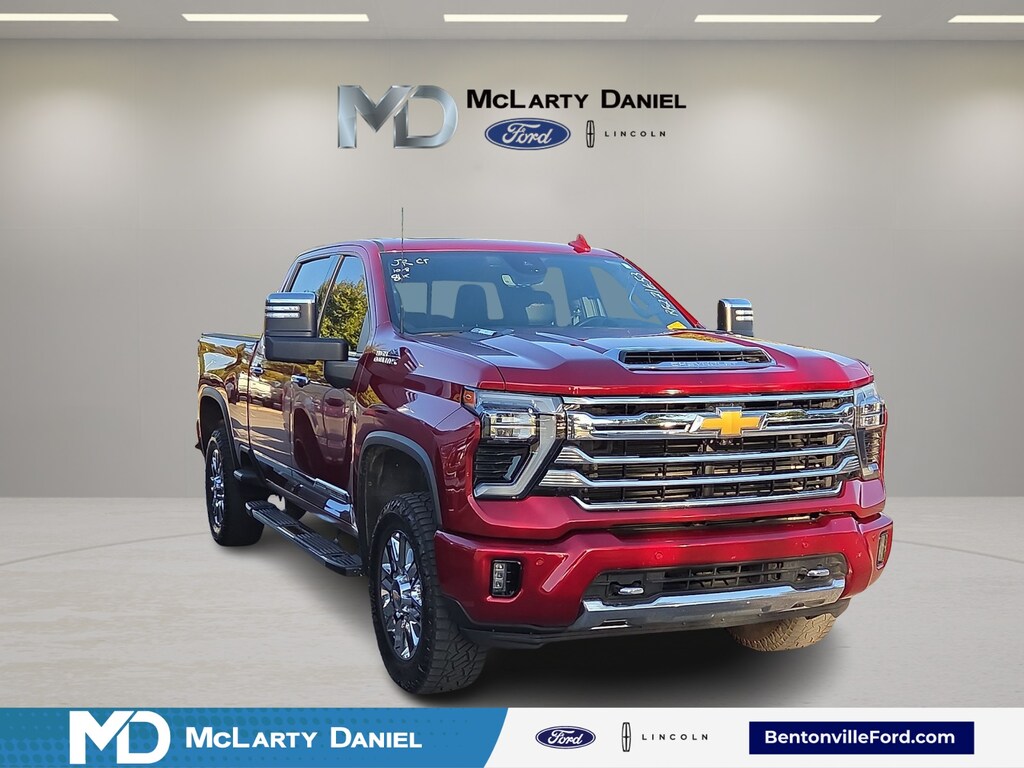 CARFAX One-Owner. Clean CARFAX. 10-Speed Automatic, 4WD, Jet Black Leather, 120-Volt Bed Mounted Power Outlet, 120-Volt Interior Power Outlet, 170 Amp Alternator, 6" Rectangular Chromed Tubular Assist Steps, Auto-Dimming Inside Rear-View Mirror, Bed View Camera w/2 Trailer Camera Provisions, Black Chevytec Spray-On Bedliner, Bluetooth® For Phone, Chevrolet Connected Access Capable, Chrome Door Handles, Chrome Mirror Caps, Color-Keyed Carpeting Floor Covering, Compass, Deep-Tinted Glass, Electric Rear-Window Defogger, Electronic Cruise Control w/Set & Resume Speed, Front Carpeted Floor Mats, Front Chrome Recovery Hooks, Front LED Fog Lamps, Front Rain-Sensing Wipers, Gooseneck/5th Wheel Prep Package, Heated 2nd Row Outboard Seats, Heated Steering Wheel, Hitch Guidance w/Hitch View, In-Vehicle Trailering App System, Keyless Open & Start, LED Cargo Area Lighting, Manual Tilt & Telescoping Steering Column, OnStar & Chevrolet Connected Services Capable, Polished Exhaust Tip, Power Door Locks, Power Front Windows w/Driver Express Up/Down, Power Front Windows w/Passenger Express Up/Down, Power Rear Windows w/Express Down, Power Sliding Rear Window w/Defogger, Preferred Equipment Group 3LZ, Push Button Start, Pwr Up/Down Tailgate Function w/Pwr Lock & Release, Rear Carpeted Floor Mats, Rear Cross Traffic Alert, Rear Wheelhouse Liners, Remote Vehicle Starter System, SiriusXM w/360L, Standard Tailgate, Steering Wheel Audio Controls, Trailer Camera Provisions, Ultrasonic Front & Rear Park Assist, Unauthorized Entry Theft-Deterrent System, Universal Home Remote, Up-Level Rear Seat w/Storage Package, Wi-Fi Hotspot Capable, Wireless Charging, Wireless Phone Projection, Wrapped Steering Wheel. Radiant Red Tintcoat 2024 Chevrolet Silverado 2500HD High Country 4WD 10-Speed Automatic Duramax 6.6L V8 Turbodiesel