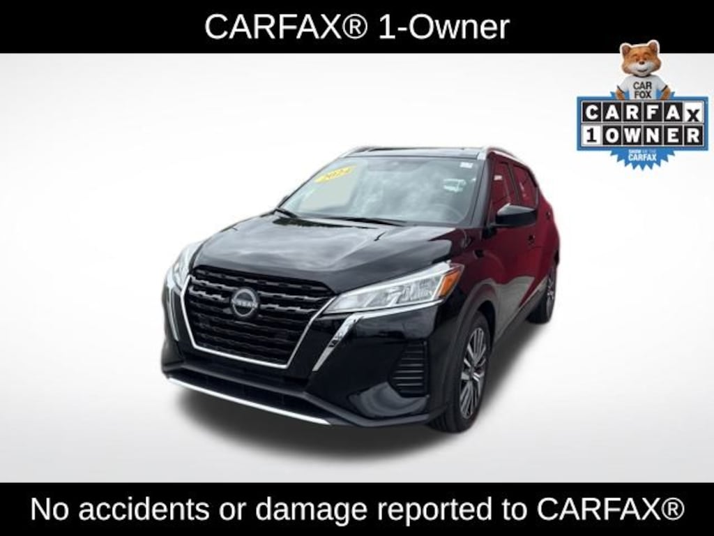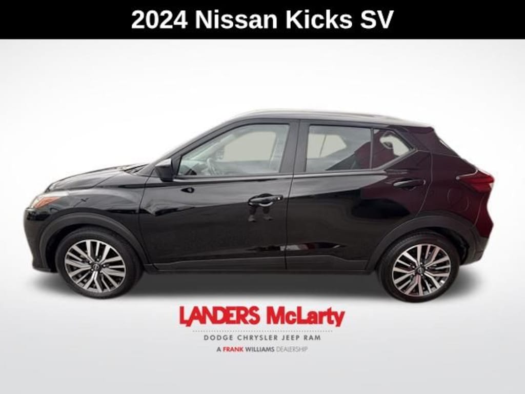 APPLE CARPLAY, Kicks SV, 4D Sport Utility, 1.6L 4-Cylinder DOHC 16V, CVT with Xtronic, FWD, Super Black, Charcoal Cloth, 3.93 Axle Ratio, 4-Wheel Disc Brakes, 6 Speakers, ABS brakes, Air Conditioning, Alloy wheels, AM/FM radio: SiriusXM, Apple CarPlay/Android Auto, Auto High-beam Headlights, Blind Spot Warning, Brake assist, Bumpers: body-color, Cloth Seat Trim, Driver door bin, Driver vanity mirror, Dual front impact airbags, Dual front side impact airbags, Electronic Stability Control, Front anti-roll bar, Front Bucket Seats, Front Center Armrest, Front reading lights, Front wheel independent suspension, Fully automatic headlights, Heated door mirrors, Illuminated entry, Knee airbag, Low tire pressure warning, Occupant sensing airbag, Outside temperature display, Overhead airbag, Panic alarm, Passenger door bin, Passenger vanity mirror, Power door mirrors, Power steering, Power windows, Radio data system, Radio: AM/FM Audio System, Rear Parking Sensors, Rear reading lights, Rear side impact airbag, Rear window defroster, Rear window wiper, Remote keyless entry, Speed control, Split folding rear seat, Sport steering wheel, Steering wheel mounted audio controls, Tachometer, Telescoping steering wheel, Tilt steering wheel, Traction control, Trip computer, Variably intermittent wipers, Wheels: 17" Alloy (5-Hole). CARFAX One-Owner. Clean CARFAX. Super Black 2024 Nissan Kicks SV FWD CVT with Xtronic 1.6L 4-Cylinder DOHC 16V
